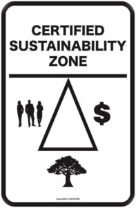 We are very pleased to announced the launch of our latest new initiative, Certified Sustainability Zones (CSZs), the first certification program to recognize whole populations (e.g., municipalities) for their commitments to sustainability and their cutting-edge use of context-based, Triple Bottom Line performance accounting tools.